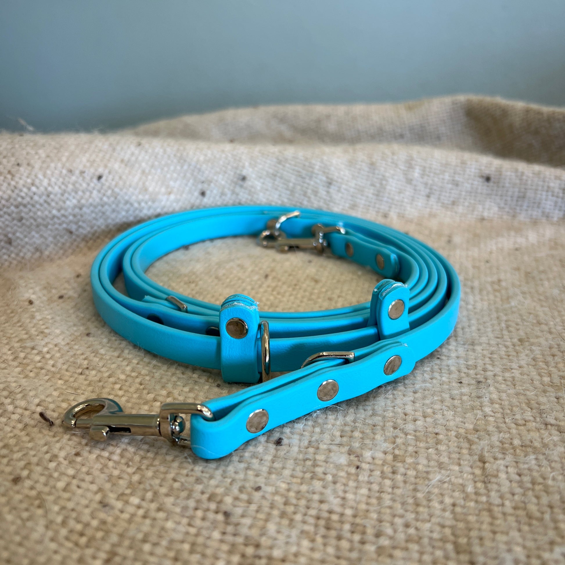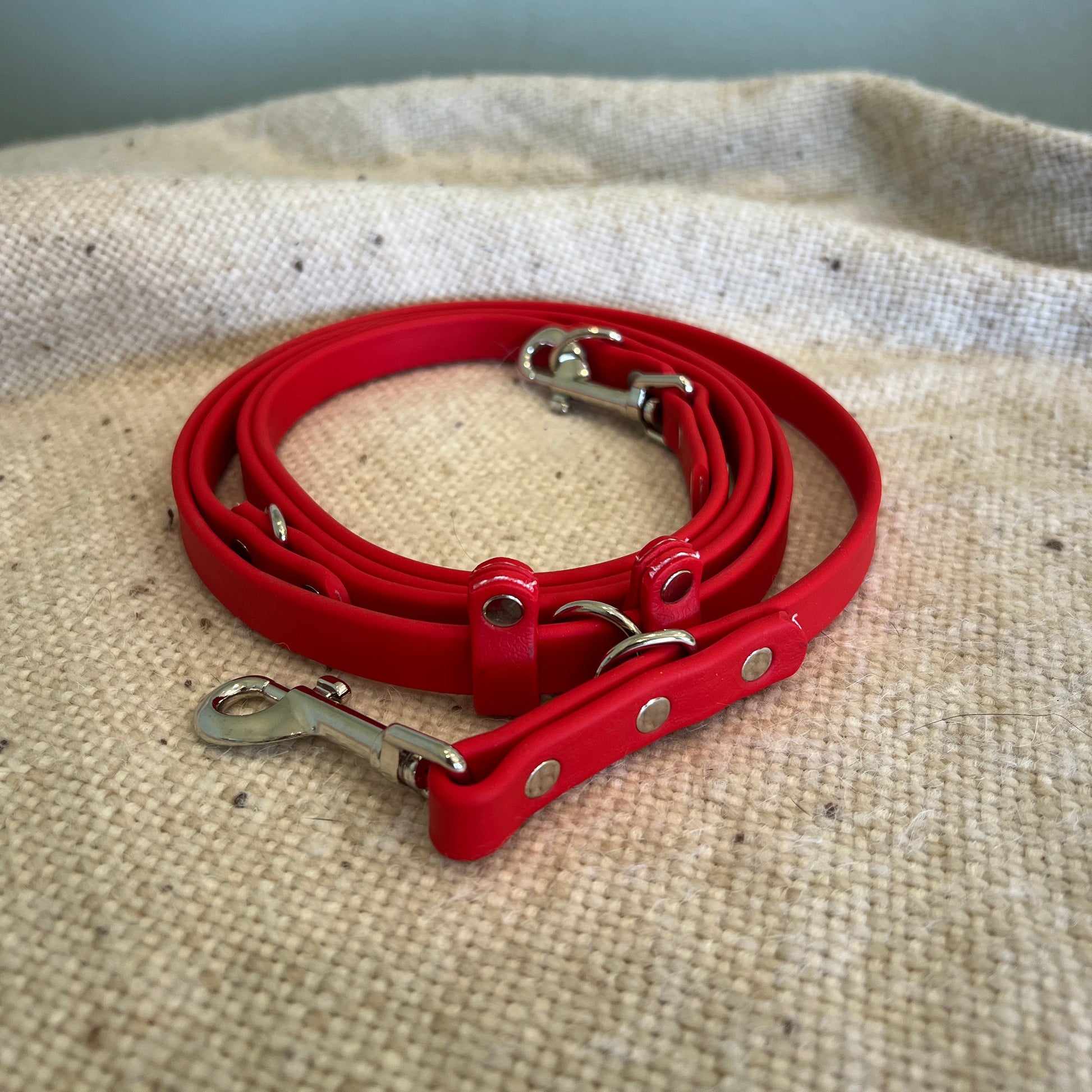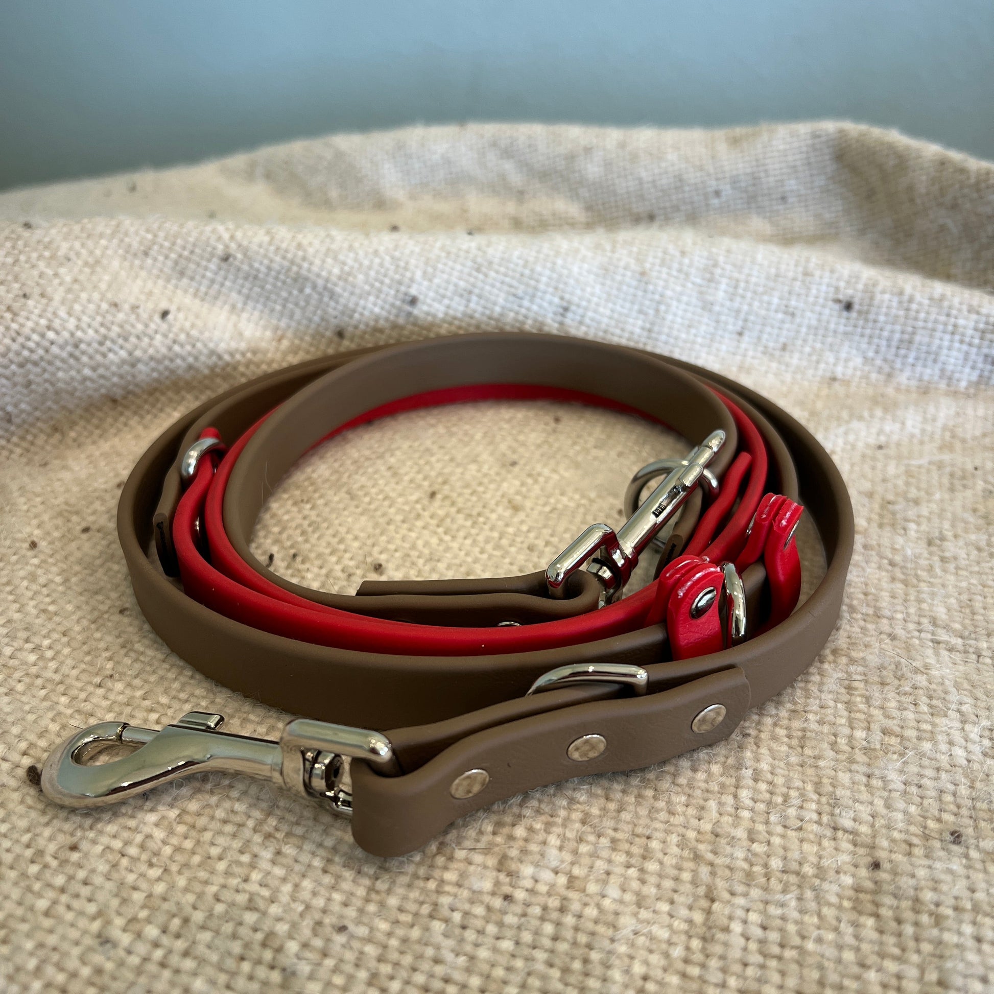A super versatile 7-foot long leash for running around town with your pup! These leashes are pre-made and ready to ship. Check out our custom leashes if you want different length or color options.