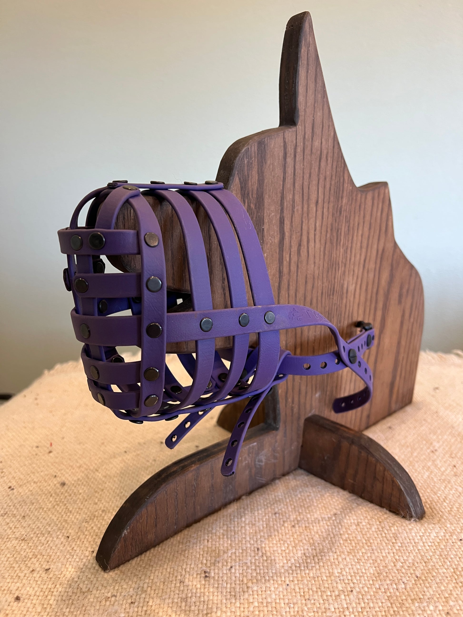 This muzzle's options are; Treat hole, Open Nose, Black Rivets, and a Plastic Buckle.